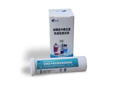 食鹽含碘量速測(cè)試紙能準(zhǔn)確測(cè)定食鹽中碘含量。碘與試紙上的藥劑發(fā)生顯色反應(yīng),根據(jù)試紙的顏色變化可檢測(cè)出加碘鹽中碘的含量。