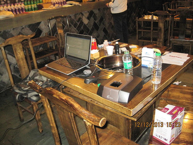 2013年12月12日下午, 智云達(dá)公司的領(lǐng)導(dǎo)和技術(shù)人員陪同四川省食藥監(jiān)局的領(lǐng)導(dǎo)現(xiàn)場(chǎng)執(zhí)法,在執(zhí)法過(guò)程中抽查某連鎖火鍋店青羊店時(shí),在廚房發(fā)現(xiàn)餐廚回收油提煉工具2套,提煉半成品2個(gè)桶內(nèi)各半桶,回收成品油1桶,約200多斤。成品油還在文火熬制(老板解釋這是不用的廢棄油,馬上拉走),油在桶內(nèi)褐得發(fā)黑,取出來(lái)后紅褐色。利用智云達(dá)公司的食用油過(guò)氧化值速測(cè)盒檢測(cè)了樣品的過(guò)氧化值,又利用PCS多功能食品安全快速檢測(cè)儀檢測(cè)了地溝油極性標(biāo)志物,平行檢測(cè)試驗(yàn)結(jié)果表明,兩個(gè)指標(biāo)均為陽(yáng)性,確定該火鍋店回收提煉的是地溝油無(wú)疑。