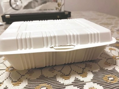 記者調查的10家熟食店中,有3店家盒子當作熟食一起出售。